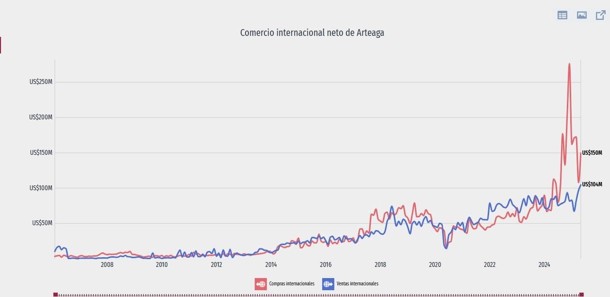 Pese a este saldo negativo, el dinamismo exportador de Arteaga se mantiene sólido gracias a su industria automotriz. Además, se consolida como un nodo estratégico dentro del comercio internacional del estado, que acumuló en 2024 una IED de US$397 millones, encabezada por inversiones de Países Bajos y Corea del Sur.