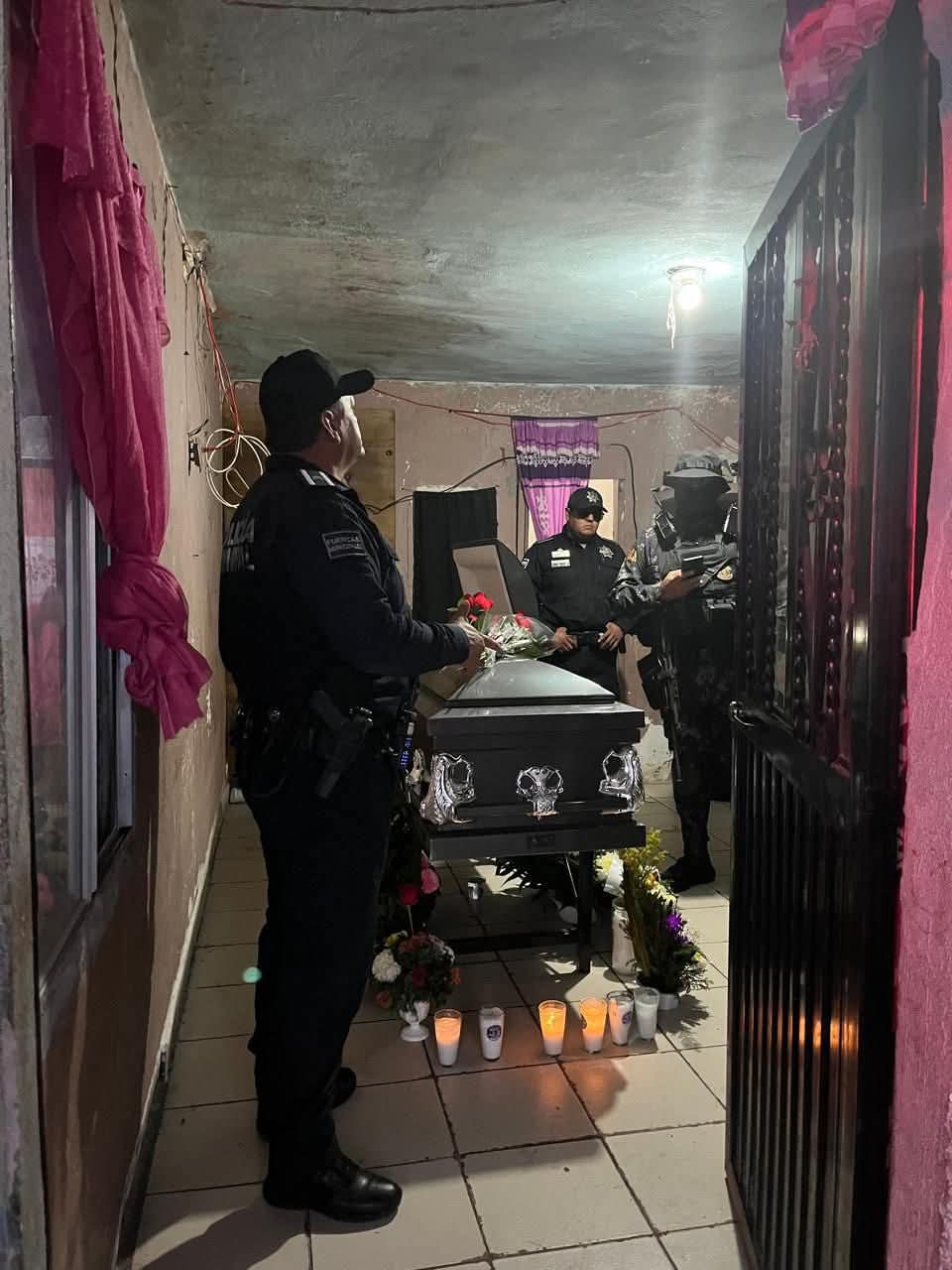 Los elementos policiales obsequiaron a la familia arreglos florales, pan y refrescos además de brindarles compañía y quedar a disposición ante la situación que atraviesan.
