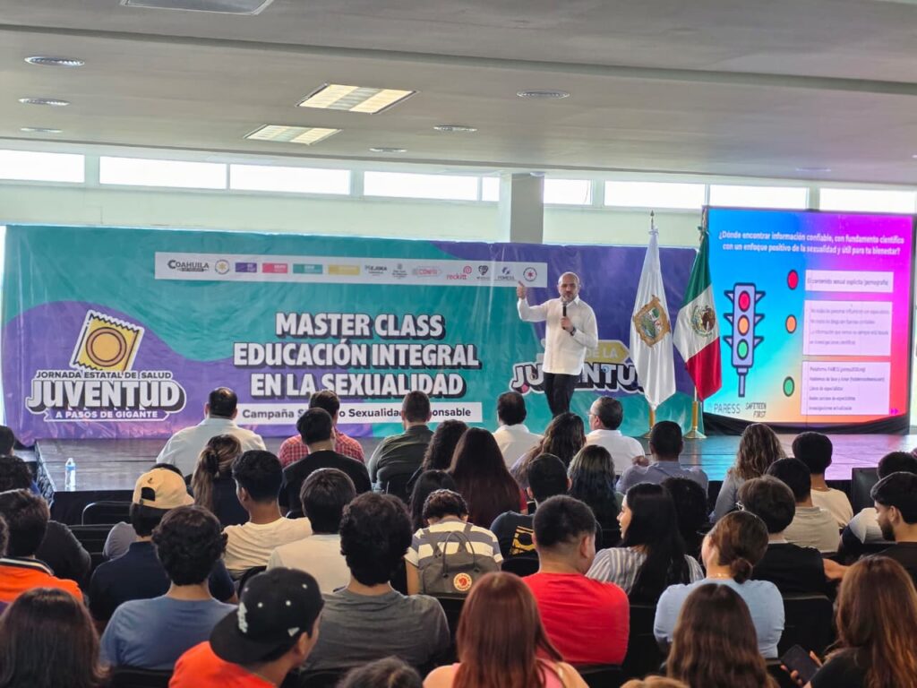 Comenzamos el día de hoy, con esta campaña estatal, en la Universidad Tecnológica de la región Carbonífera, en donde se llevó a cabo una Master Class por Rodrigo Moheno, presidente de la Federación Mexicana de Educación Sexual y Sexología (FEMESS), ante más de 400 jóvenes, con el objetivo de que accedan a información veraz y a servicios de salud.