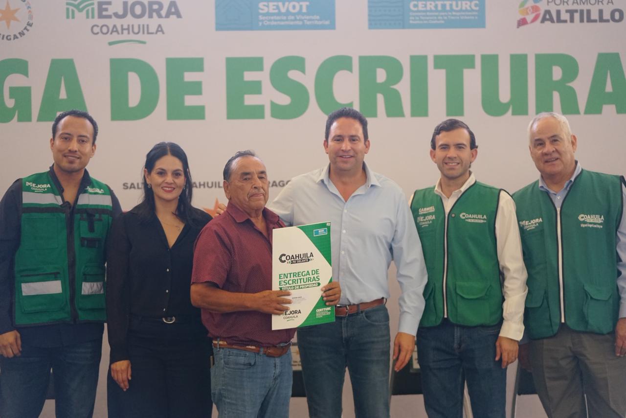 Con el objetivo de brindar certeza jurídica y fortalecer el patrimonio de las familias, el gobernador Manolo Jiménez a través de Mejora, CERTTURC y la Secretaría de la Vivienda y Ordenamiento Territorial han realizado la entrega de más de 2000 escrituras en todo Coahuila.