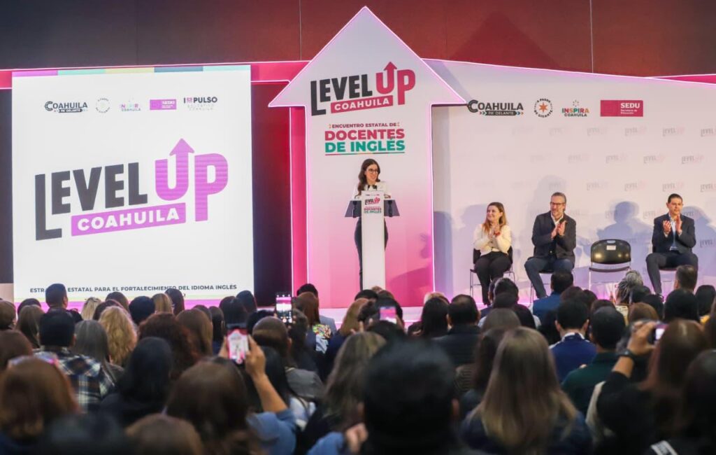 Saltillo, Coahuila de Zaragoza, 9 de noviembre de 2025.- Como parte del programa integral Level Up, el Gobierno del Estado, a través de la Oficina Inspira Coahuila, y en coordinación con la Secretaría de Educación, llevaron a cabo el Encuentro Estatal de Docentes de Inglés, en el cual participaron más de 500 maestras y maestros de todas las regiones y de los diferentes niveles educativos, desde primaria, hasta universidad.