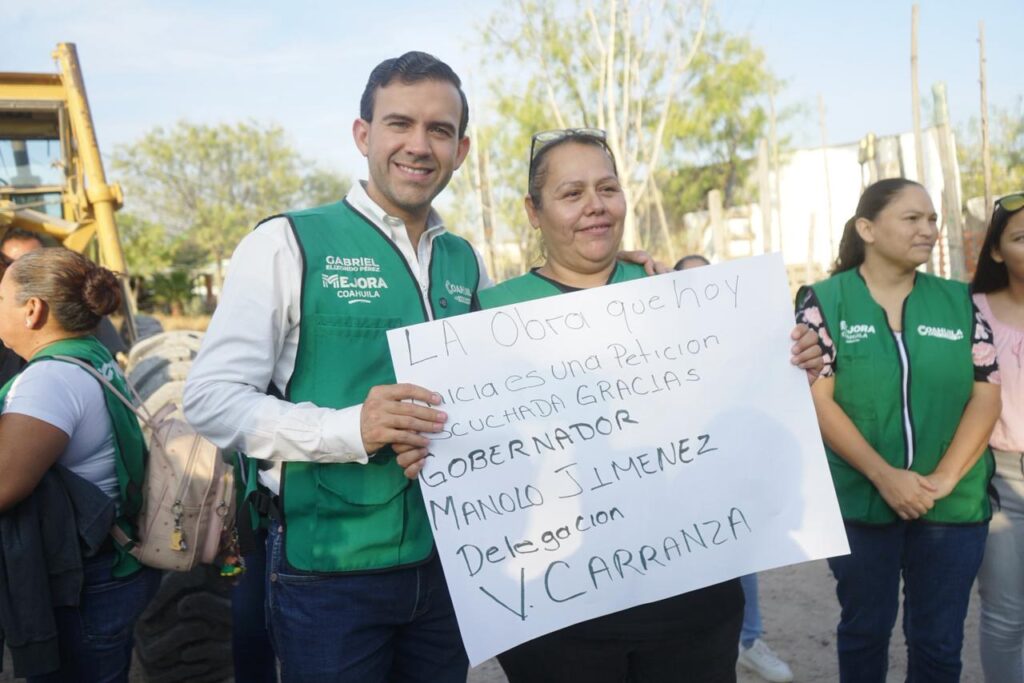 Posteriormente, en el municipio de Piedras Negras, con una inversión de 2.44 millones de pesos, Gabriel Elizondo Pérez, coordinador de Mejora, encabezó la entrega de pavimentación en la colonia ejido Piedras Negras, abarcando las calles Revolución, entre Emiliano Zapata y Francisco Villa, 16 de septiembre, entre Emiliano Zapata y Francisco Villa, y 1° de Mayo, entre Emiliano Zapata y Francisco Villa.