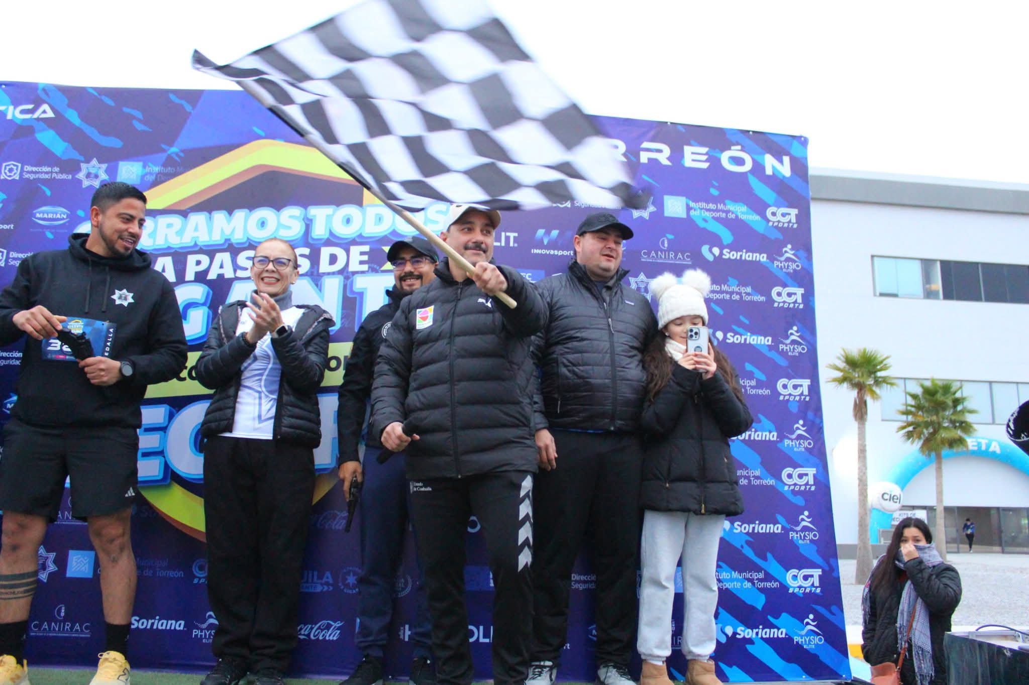Torreón, Coah., 13 de enero de 2026.– A pesar de las bajas temperaturas que se registraron en La Laguna, más de 500 corredores participaron en la primera edición de la Carrera Atlética “Corramos Todos a Pasos de Gigante por un Coahuila y un Torreón Seguro”.