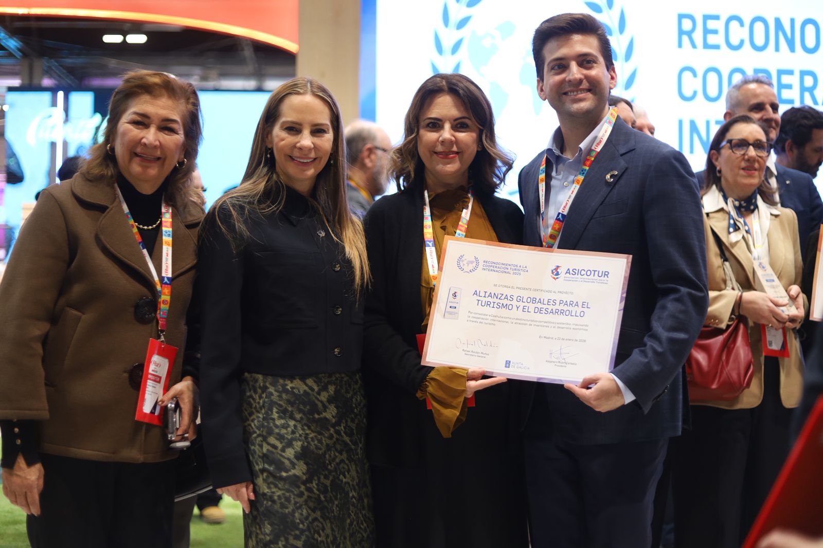 En cuanto a galardones, Coahuila recibió el Premio Excelencias 2025 por la Cabalgata de Sabinas, otorgado por el Grupo Excelencias, y el Reconocimiento a la Cooperación Turística Internacional 2025, otorgado por ASICOTUR, por las alianzas globales impulsadas en materia de turismo y desarrollo a través de la oficina de representación de Coahuila en la Ciudad de México.