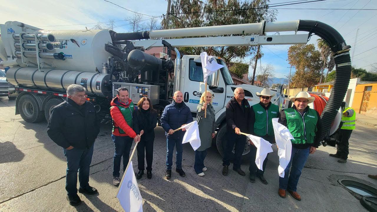 Como parte de esta estrategia regional, se llevó a cabo la entrega de un vactor en el municipio de Melchor Múzquiz, donde también se realizó la entrega de una unidad especializada para el desazolve, limpieza y mantenimiento de redes sanitarias y pluviales, lo que permitirá mejorar la atención operativa y la capacidad de respuesta del sistema intermunicipal.