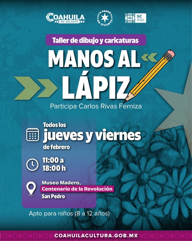 Saltillo, Coah., 5 de febrero de 2026.- La Secretaría de Cultura de Coahuila presenta la cartelera de actividades culturales del mes de febrero de 2026, con una programación que articula conmemoraciones históricas, actividades artísticas, fomento a la lectura y presencia permanente en museos, escuelas y espacios públicos del estado.