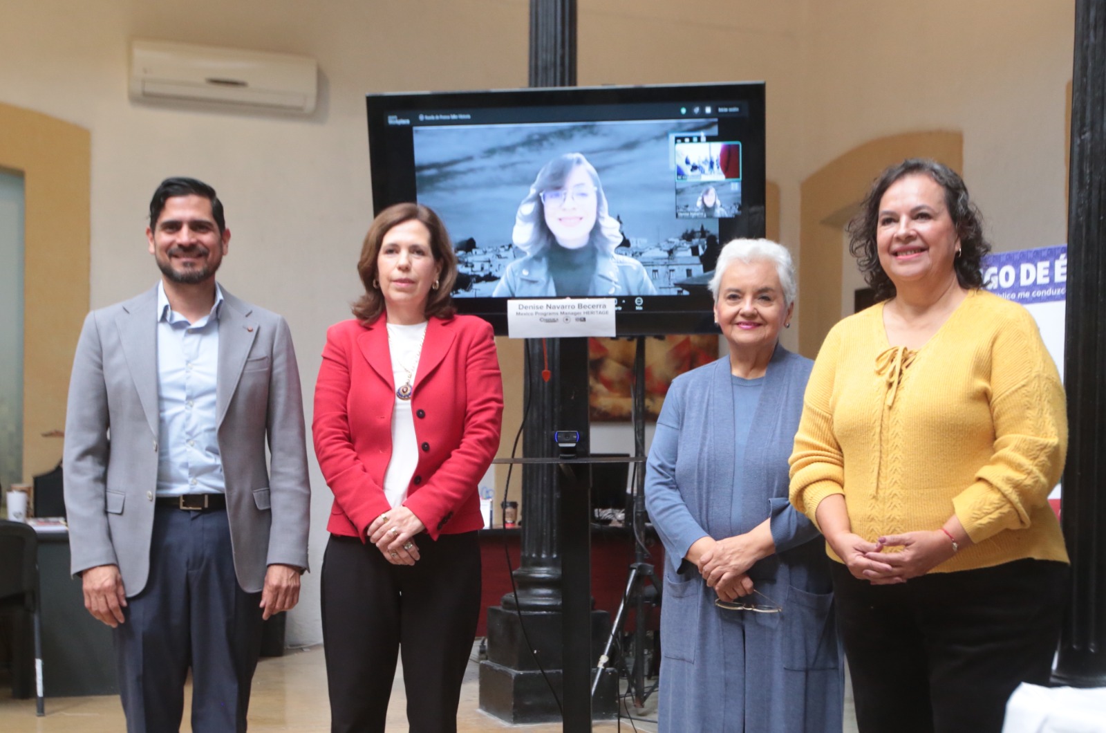 En la rueda de prensa estuvieron presentes además de la Secretaria de Cultura Esther Quintana Salinas, Denise Navarro Becerra, México Programs Manager HERITAGE , María del Roble Barret Zertuche, Directora de Vinculación de la SC, Iván Vartan Muñoz Cotera, Director del Archivo General del Estado y Olivia Strozzi Galindo, directora del Archivo Municipal de Saltillo.