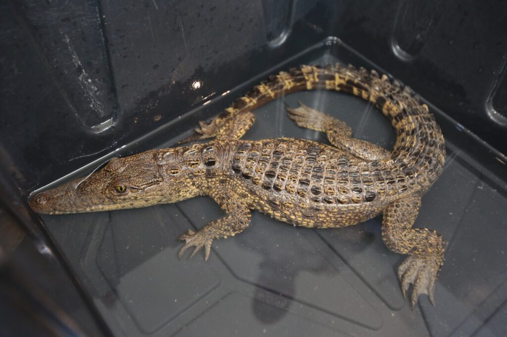 Durante un monitoreo nocturno realizado en días recientes en la presa Palo Blanco de Ramos Arizpe, se confirmó la presencia de dos ejemplares. En este operativo se logró capturar un macho juvenil de aproximadamente 50 a 60 centímetros de longitud, en buen estado corporal, identificado como Crocodylus moreletii, comúnmente conocido como cocodrilo de pantano.