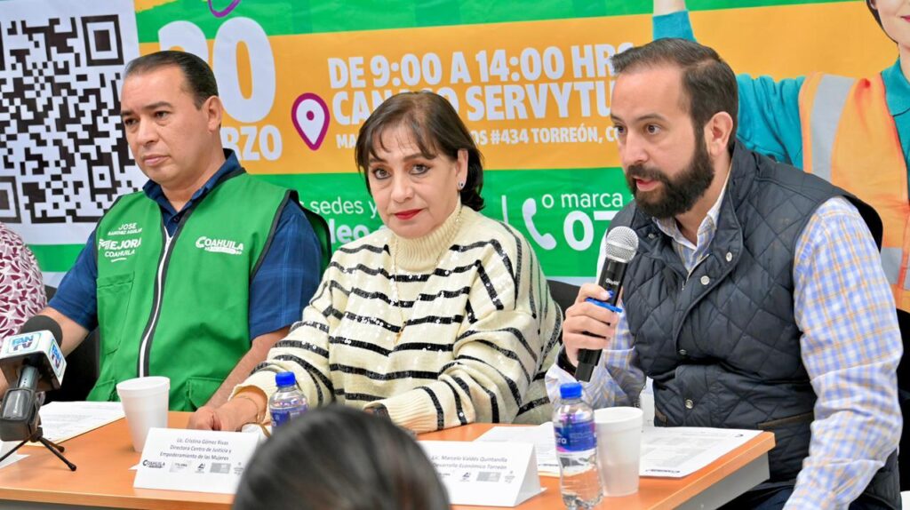 Torreón, Coah., 18 de marzo de 2026.- Con el objetivo de impulsar la autonomía económica de las mujeres y fortalecer el mercado laboral local, el Gobierno del Estado, en coordinación con el Ayuntamiento de Torreón y el Servicio Nacional de Empleo (SNE), anunció la Segunda Feria del Empleo 2026, enfocada prioritariamente en el sector femenino en el marco del mes de la mujer.