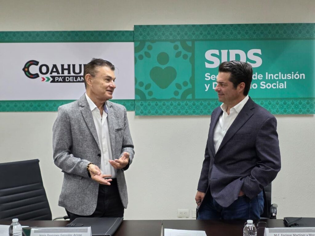 Saltillo, Coah., 26 de marzo de 2026.- El secretario de Inclusión y Desarrollo Social, Enrique Martínez y Morales, encabezó la firma de un convenio de colaboración con Nacional Financiera (NAFIN) y el Banco Nacional de Comercio Exterior (BANCOMEXT), con el propósito de fortalecer las oportunidades de desarrollo económico en el estado mediante el impulso al emprendimiento.