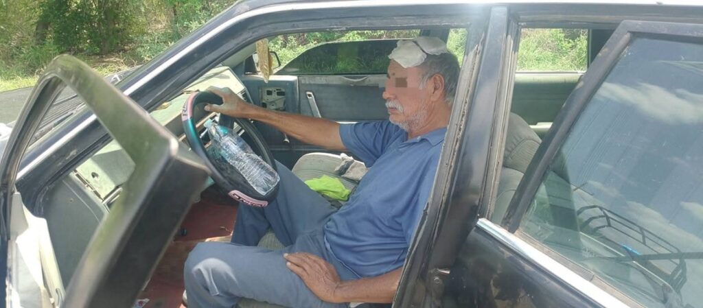 Jiménez , Tamps., 23 de abril de 2026.- Personal de la Guardia Estatal brindó auxilio a un adulto mayor que presentó signos de deshidratación mientras circulaba por la Carretera Federal 101, en el tramo Matamoros–Matamoros, a la altura de Jiménez, quien se encontraba desaparecido desde la madrugada de este miércoles.