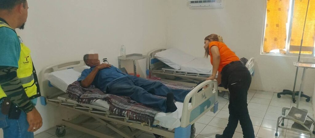 Al acercarse para verificar la situación, observaron que presentaba malestar físico, con aparente estado de deshidratación y con hipertensión, por lo que de inmediato se procedió a brindarle atención.